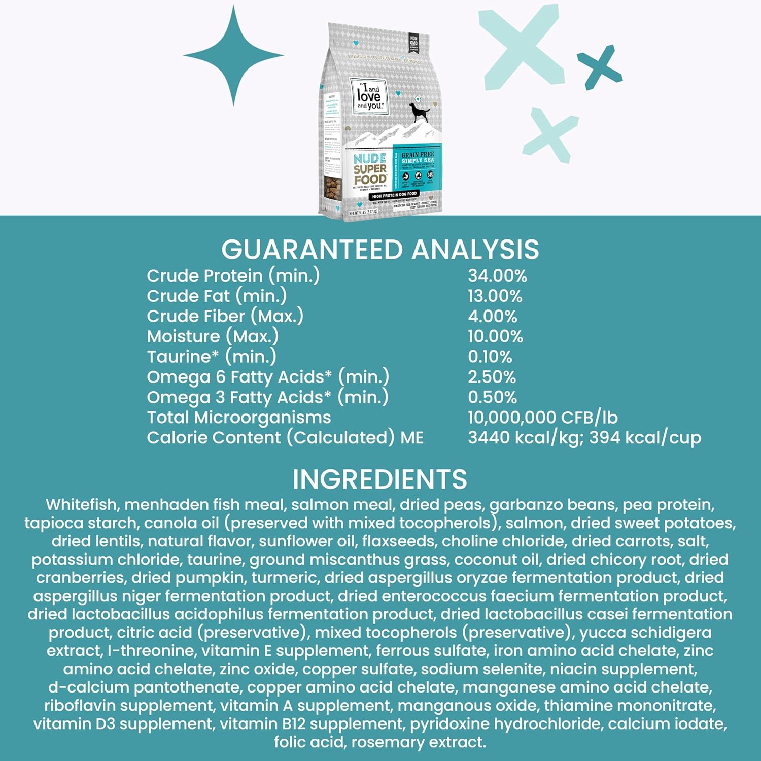 I AND LOVE AND YOU Nude Super Food Dry Dog Food - Salmon + Whitefish - Prebiotic + Probiotic, Grain Free, Real Meat, No Fillers, 23lb Bag