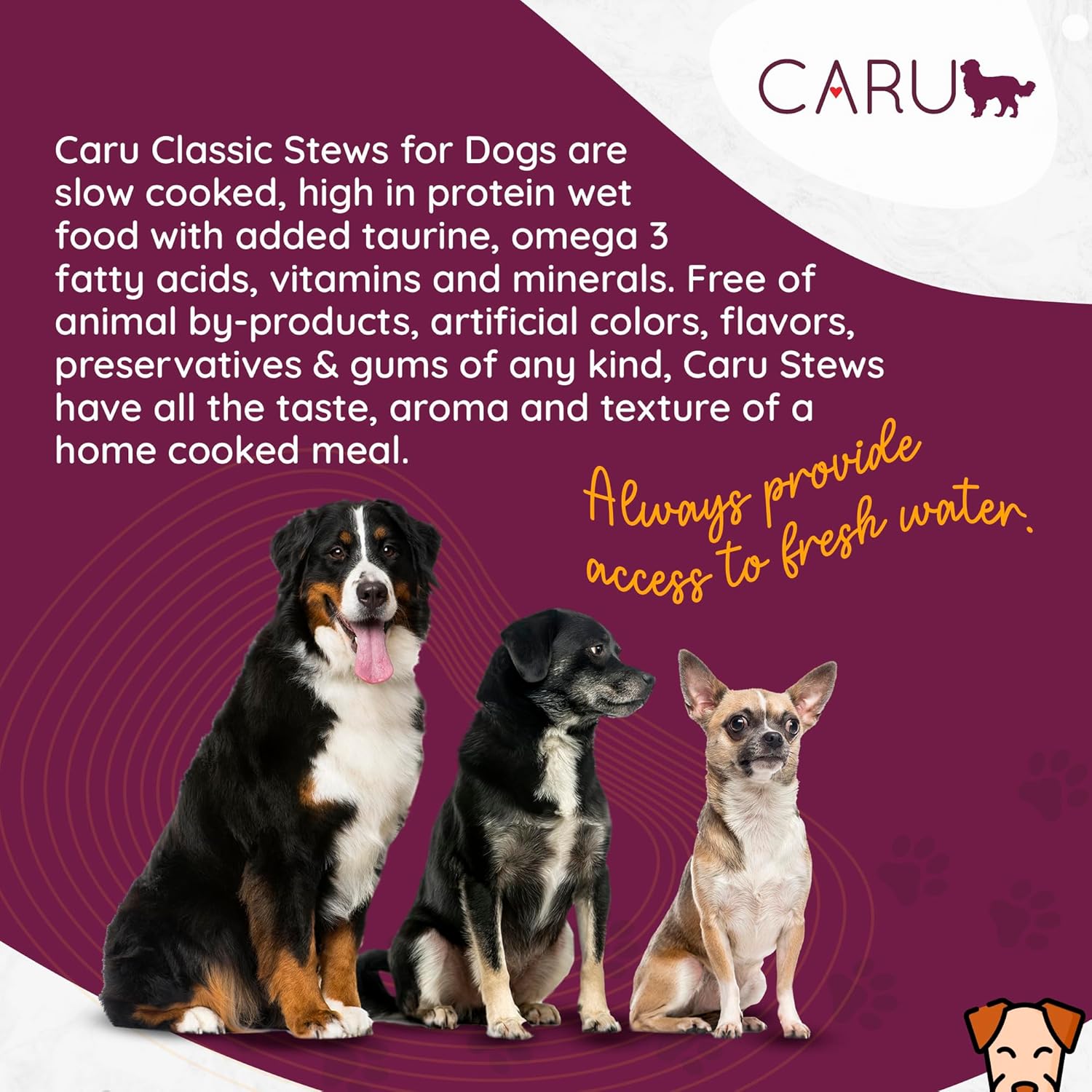 - These stews are a complete and balanced adult meal or they can be used as a tasty topper over dry food.