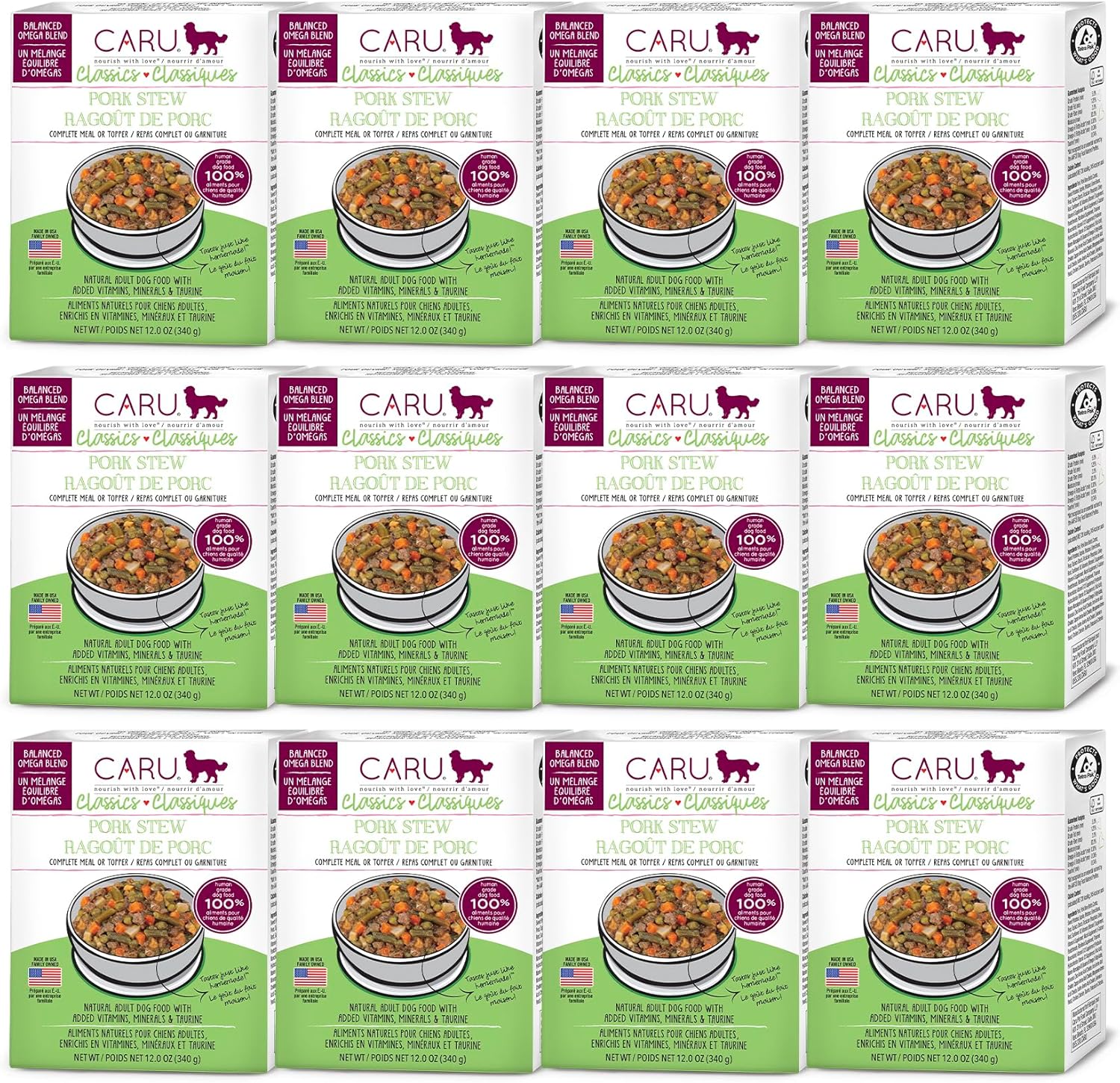 Caru - Real Pork Stew for Dogs, Natural Adult Wet Dog Food with Added Vitamins & Minerals, Free From Grain, Wheat & Gluten (Pack of 12)