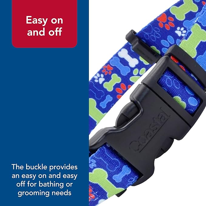 Coastal Pet SecureAway Collar Protector for Flea Collars - Adjustable pet Accessory - Protective Flea Collar for Dogs & Puppy - Multi Bones, 5/8" x 8-12"