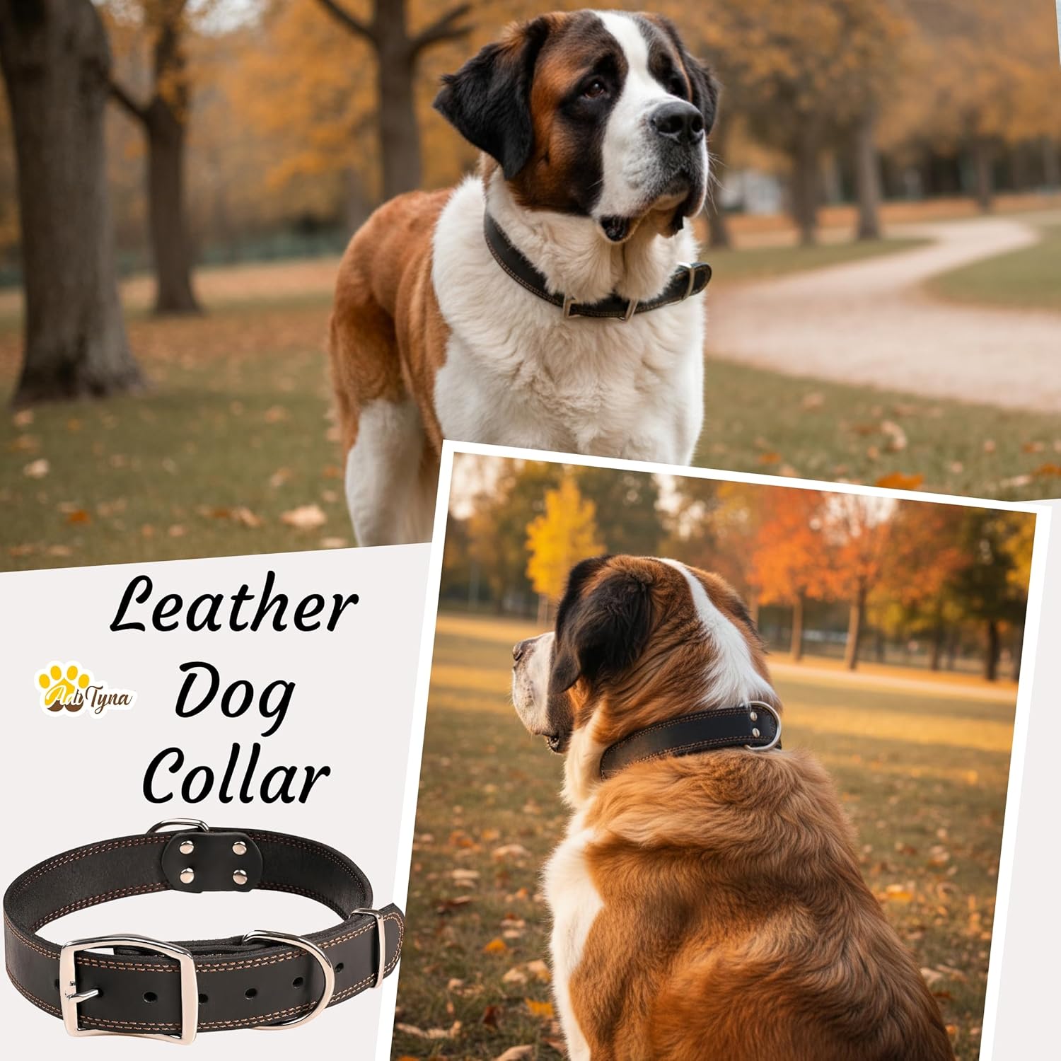 ADITYNA Heavy Duty Leather Dog Collar for Extra-Large Dogs - Soft and Strong Black Leather Collar for XL Breeds (Extra-Large: Fit 22" - 30" Neck, Black)
