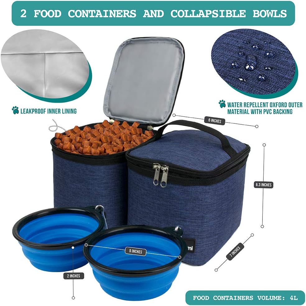 - PET SUPPLIES DOG DIAPER BAG: The dog travel backpack helps dog owners easily organize treats, kibbles, toys, leashes, and all other pet accessories and training supplies. The doggie traveling backpack comes with two food containers and two collapsible silicone dog bowls, ensuring that your pet is well-fed and hydrated during your hiking camping trip. Each food container has a 4L capacity, making it a camping gear must have for all small, medium, and large size dogs and cats.