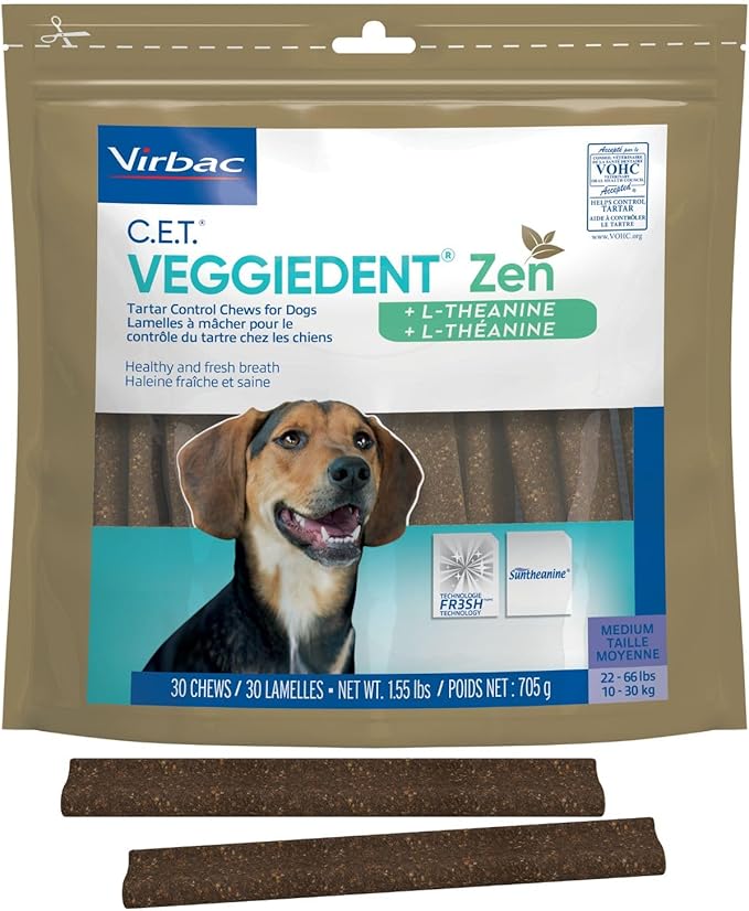 Virbac C.E.T.® VEGGIEDENT® Zen Tartar Control Chews for Dogs - Multifunctional to Support Mental Well-Being, VOHC Approved - Medium 22-66lbs