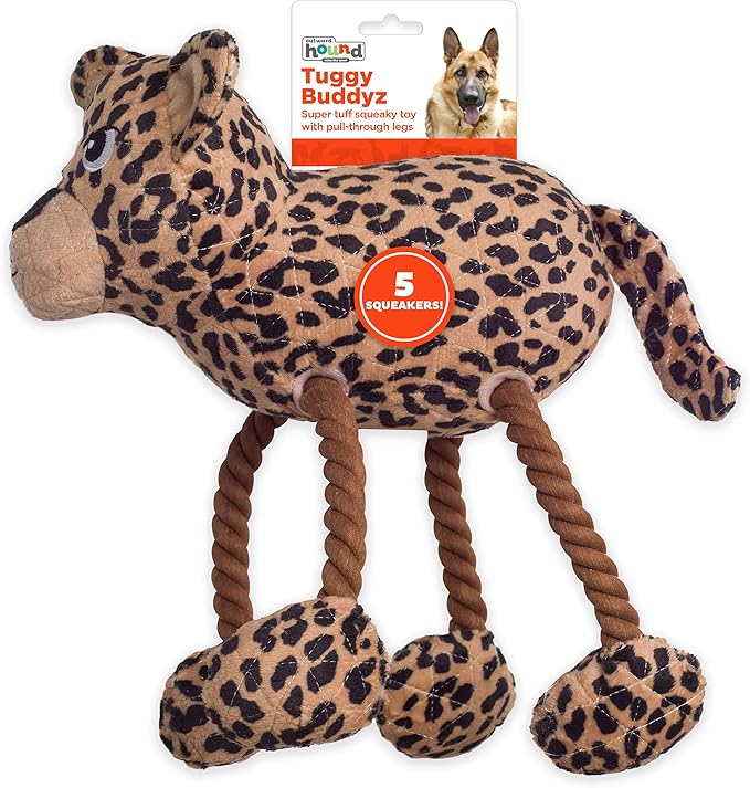 Outward Hound Tuggy Buddyz Leopard Squeaky Rope Dog Toy