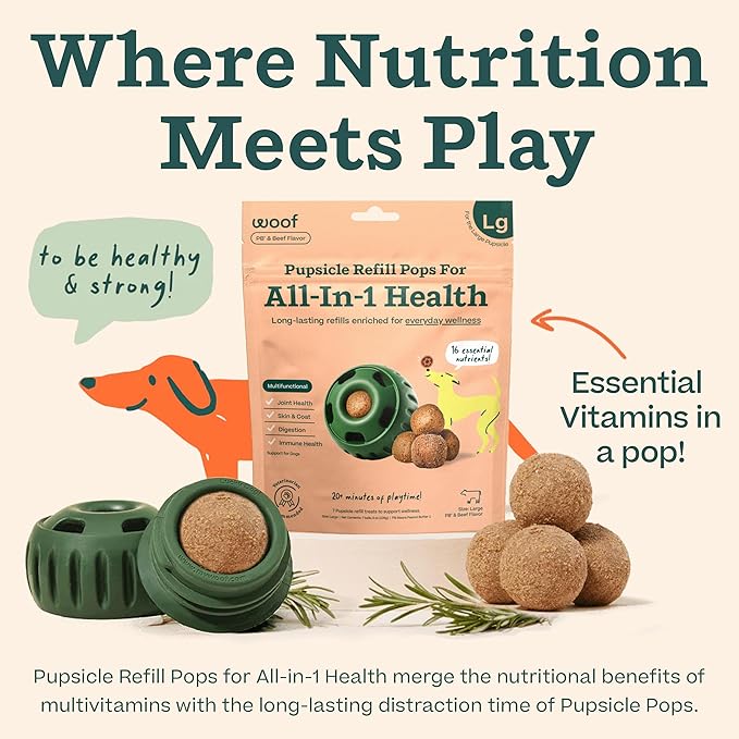 - Where Playtime And Nutrition Meet: Our Pupsicle Refill Pops for All-in-1 Health give your furry friend nutritious, long-lasting playtime when paired with the Pupsicle. This delicious dog supplement provides 30+ minutes of happy play with the added benefit of essential nutrients to support your dog's overall wellness.