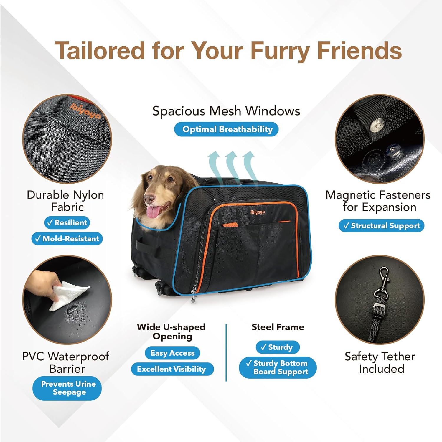 - ENHANCED SAFETY AND CLEANLINESS: Furnished with safety elements including an auto-locking zipper and safety tether, as well as a shock absorption and quick braking system. It also includes a waterproof cushion and rubber port holes to secure the pee pads for easy cleaning and maintaining hygiene.