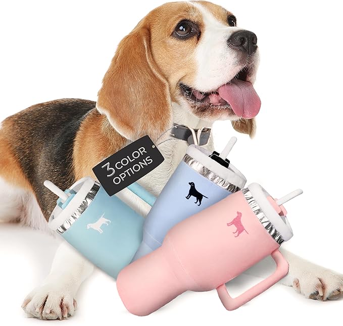 Pup Cup Tumbler Dog Toy – Cute Girl Dog Toy, Valentines & Birthday Gift, Interactive Squeaker, Fun Puppy Present (Pink Peach Dust)