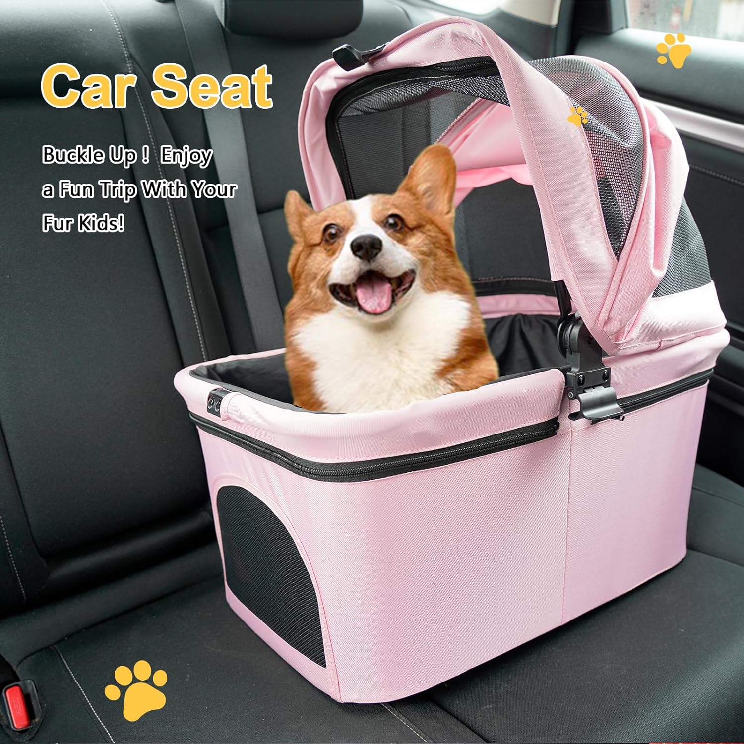 Pet Stroller for Small/Medium Dogs Cats Up to 33lbs, 3 in 1 Foldable Dog Stroller, Car Seat, Detachable Carrier with Anti-Scratch Mesh, Seat Belts, Comfort Cushions - Pink
