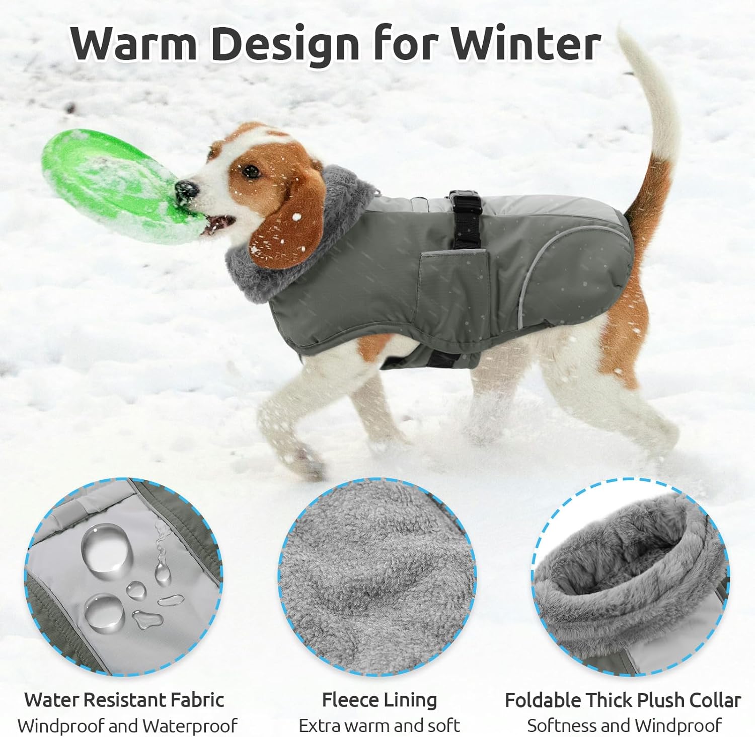 - Keep Your Dog Warm: The waterproof dog coats for winter is lined with ultra-soft thick fleece and has a high fur collar that is adjustable to effectively against the wind.The dog winter jacket will always provide warmth for your dog even in freezing weather.