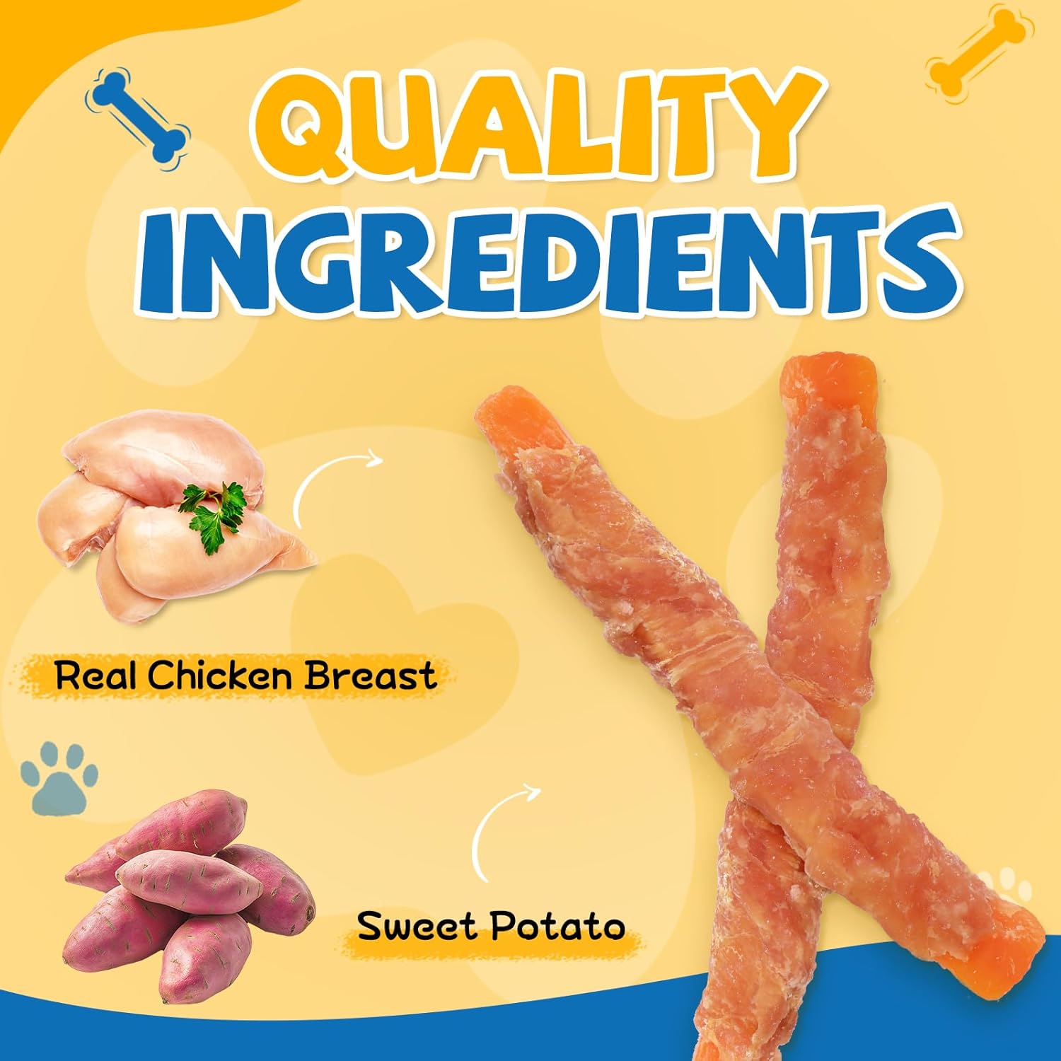 - Rawhide Free: Our chicken wrapped sweet potato treats provides the chewing satisfaction pets crave without the potential risks associated with rawhide, ensuring a worry-free treat experience for your furry friend.