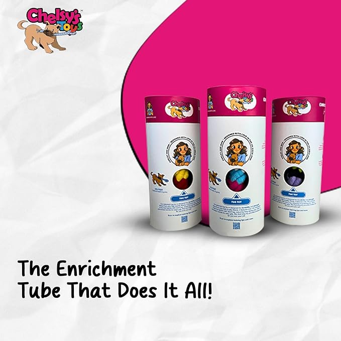 Chelsy's Toys 3-in-1 Enrichment Tube for Dogs - Tug Toy, Treat Dispenser & Snuffle Ball | Fleece Rope Dog Toy | Tug of War | Interactive Dog Treat Puzzle for Dogs & Puppies | Wet/Freeze Teether (Blue)