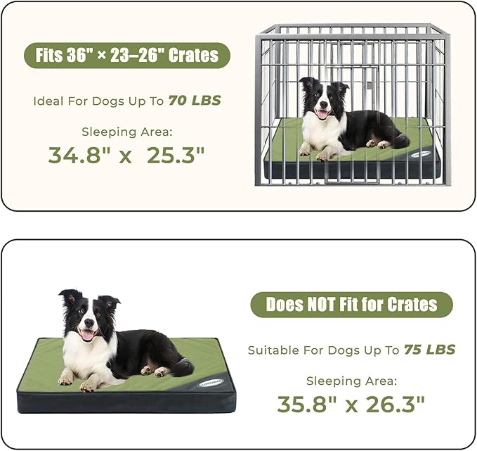 Orthopedic Outdoor Waterproof Dog Beds for Medium Dogs, Washable Pet Bed with Egg Crate Foam Pet Bed Mat for Crate and Removable Oxford Fabric Cover,36"x 26", Dark Green