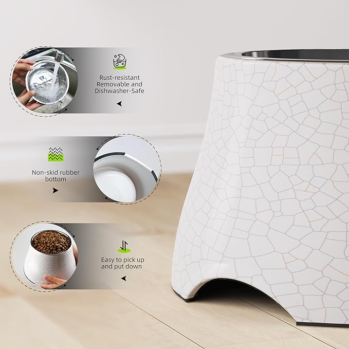 - EASY TO CLEAN: Elevated pet bowl feature removable stainless steel bowls that are effortless to take out and wash. Plus, they're dishwasher-safe, making cleanup a breeze and ensuring your pet's dining area stays clean.