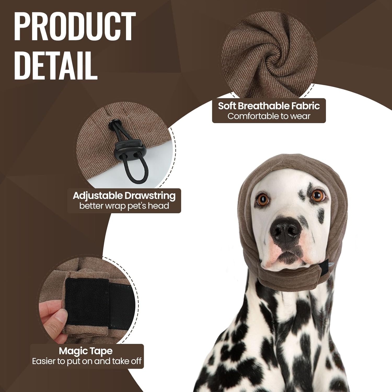- Easy to Wear: The no shake ear wraps for dogs features a magic tape, very easy to put on and take off, and the drawstring design of the dog ear covers for bath behind the neck can be adjusted according to the size and shape of the dog's ears, which can better wrap the dog's head and ears, and will not make the dog feel very restrained.