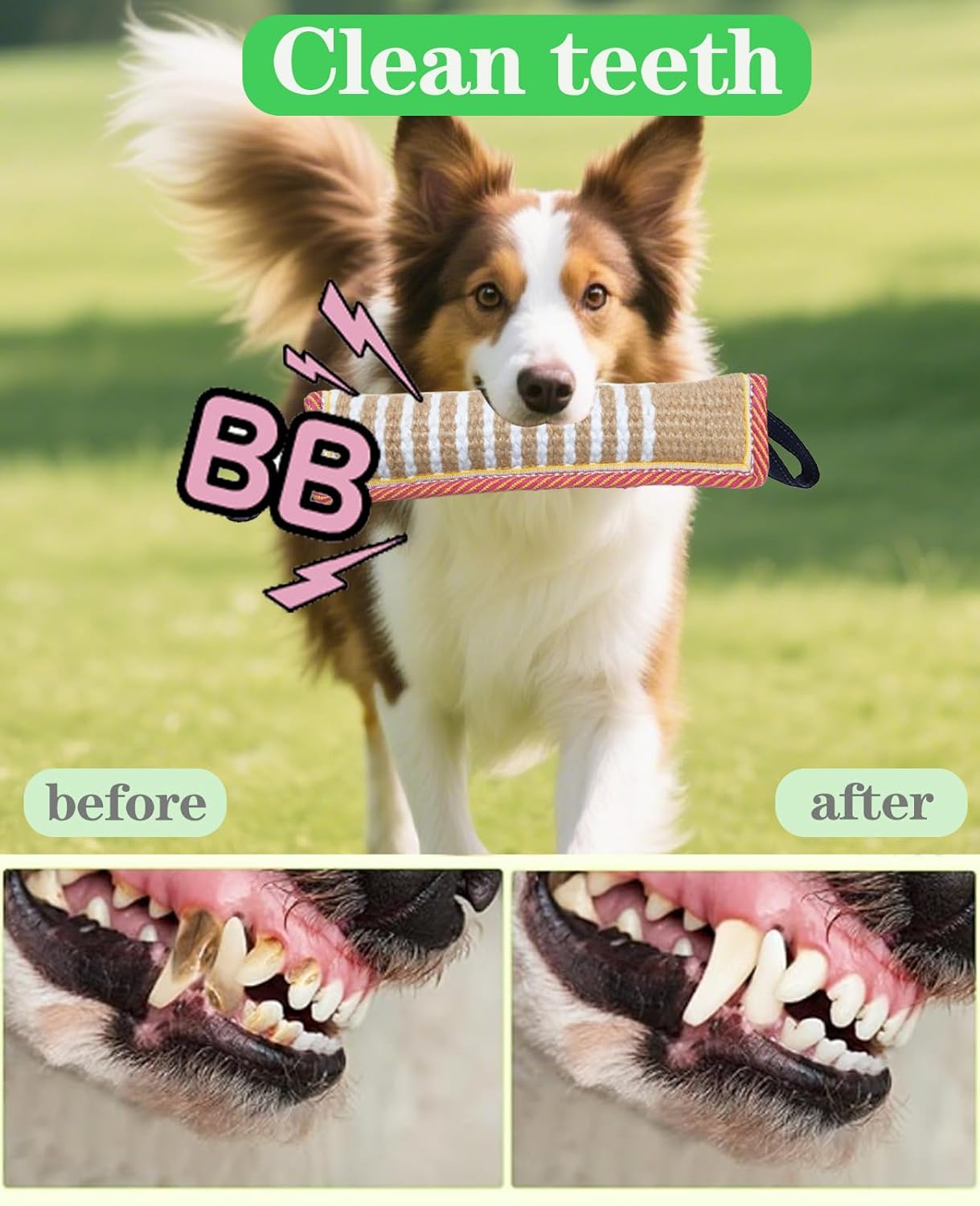 - Training tug toys for dogs function : Jute rope toughness meets dogs' chewing needs, gently rubs teeth to aid tartar removal, boosts play interest, reduces biting of furniture/wires