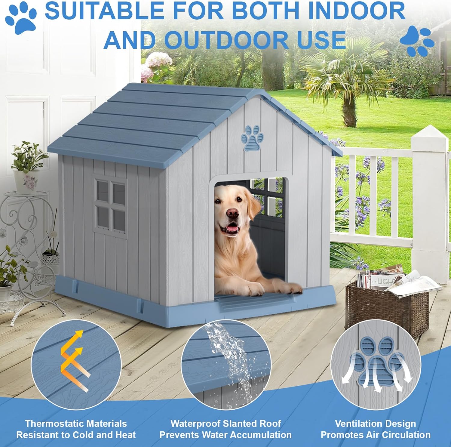 EasyUp Dog House Outdoor Indoor,Dog House Weatherproof Resin Shelter with Air Vents and Elevated Floor for Small Medium Large Dogs,Easy Clean and Assemble(37.8 * 40.87 * 38.82in,Blue)