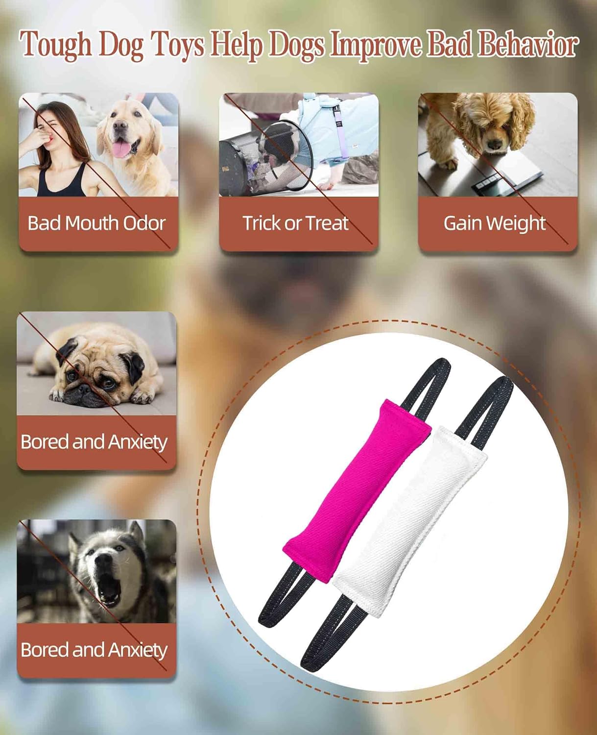 - IT’S NOT A CHEW TOY! - Tug Toys are meant for interactive tugging between you and your dog only, not chew toys. Please note that the handles on the bite pillow are not designed for the dog to bite but are for handler use only. Please put away the toy out of the dog's reach after interaction.