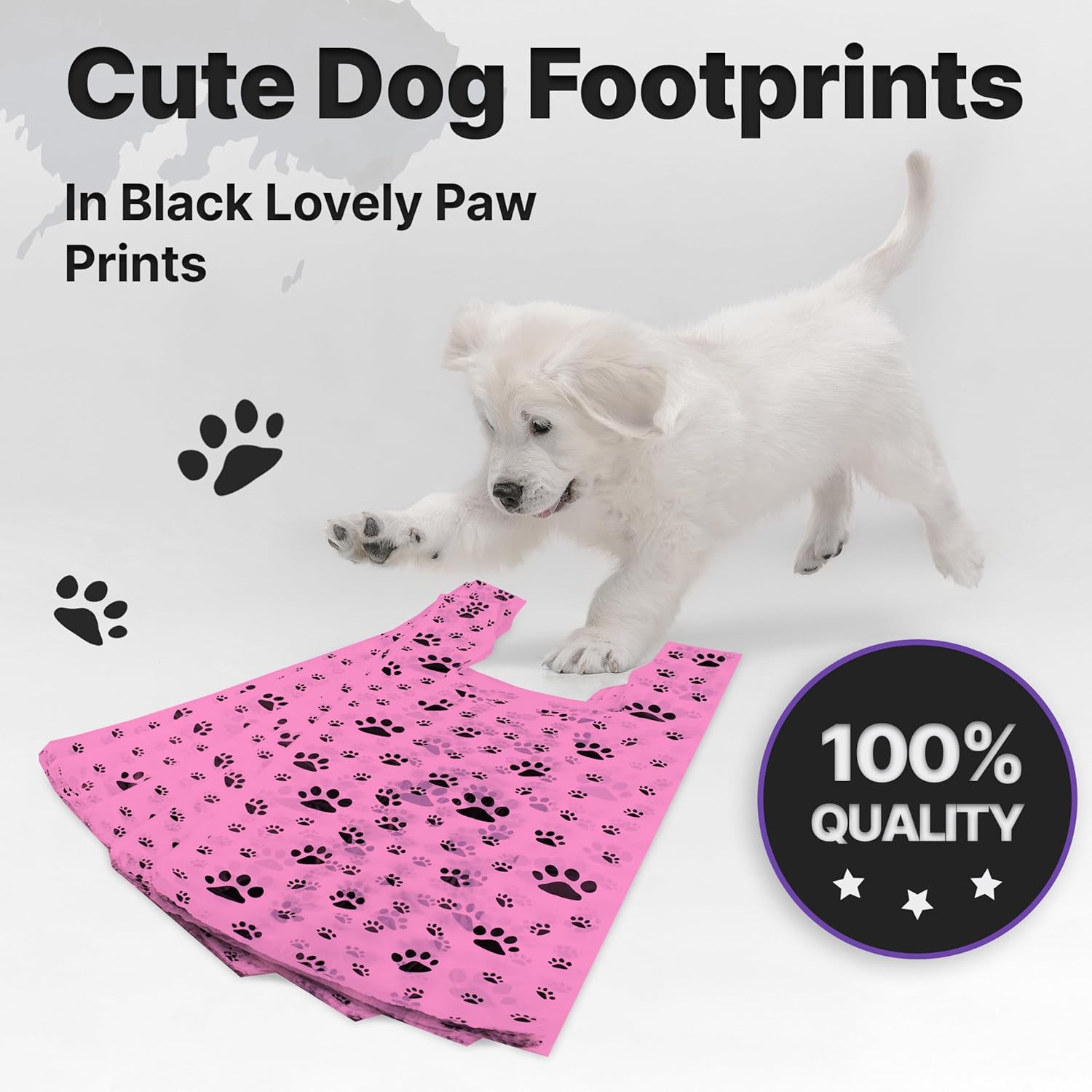 - CUTE DESIGN - Your customers will feel so special with these Paw Print bags. The plastic T Shirt Bags are printed with plenty of cute dog footprints in black on Pink Background these lovely paw prints will attract people more attention, with handy handle, it is easy for you to carry