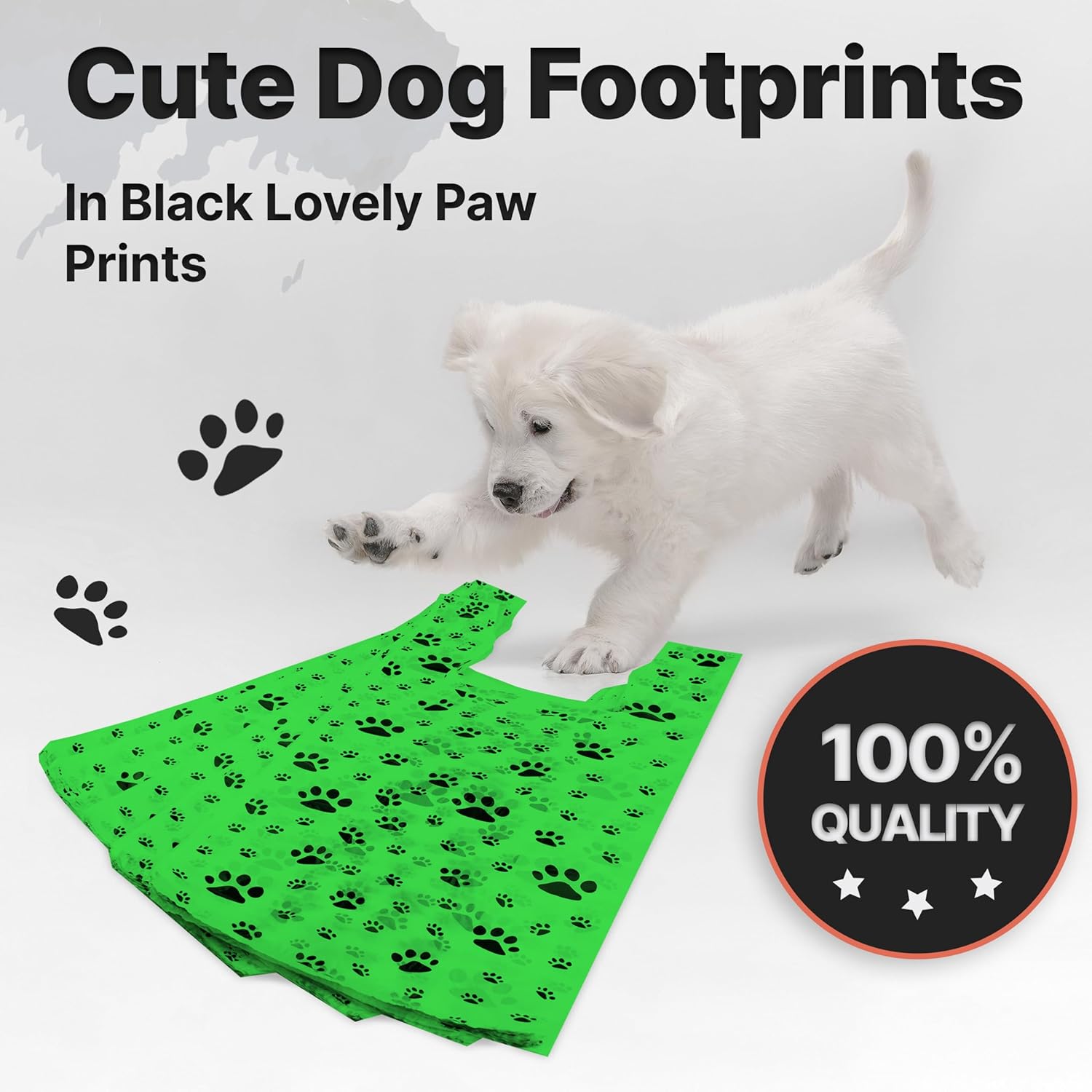 - CUTE DESIGN - Your customers will feel so special with these Paw Print bags. The plastic T Shirt Bags are printed with plenty of cute dog footprints in black on Green Background these lovely paw prints will attract people more attention, with handy handle, it is easy for you to carry