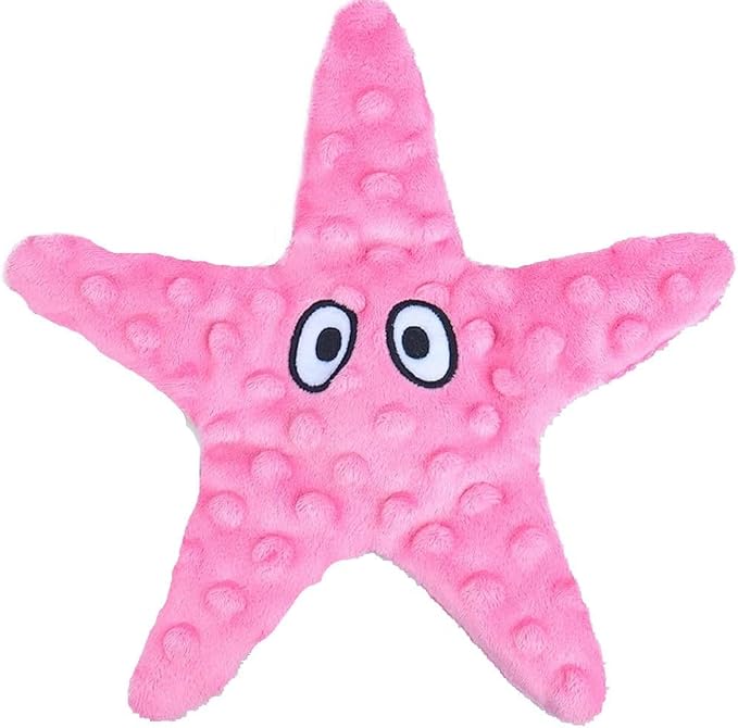 - Squeak and Crinkle: Buld-in squeaker in the starfish body, crinkle paper full of the hold fish. 2 different sounds greatly increase puppy’s interest in playing with the toy, ensuring they never get bored.