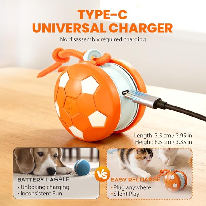 - Durable Chew-Resistant Material & Convenient Charging:Crafted from upgraded chew-resistant TPU material, this dog toys to keep them busy is built to last. Featuring a convenient USB Type-C charging port that requires no disassembly, this moving dog toy ensures long-lasting playtime for your energetic pup