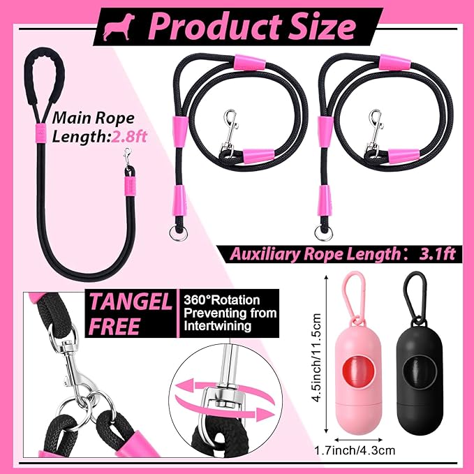 - 2 In 1 Multifunctional: double dog leash allows you to control 2 dogs simultaneously, easily handling various situations during dog walks; Furthermore, it can be held in hand or over the shoulder; Most importantly, it allows 2 dogs to enjoy walking together, strengthening their bond and making your dog walks more relaxed and enjoyable; It also comes with 2 pcs shell plus waste bag sets for added convenience