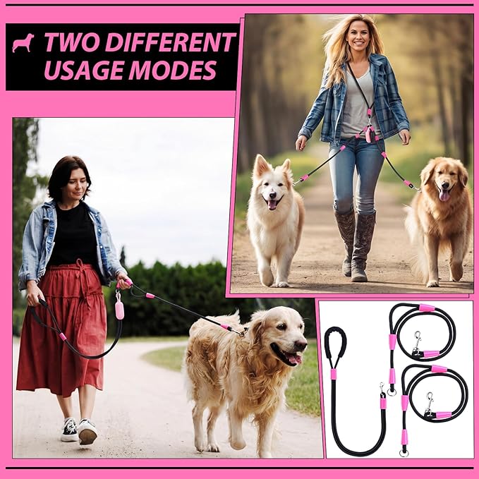 - Hands Free or Handheld Dual Dog Leash: whether you prefer a hands free leash or a traditional handheld leash, our leash has you covered; Our dual dog leash offers two adjustable modes for added safety and reliability, and you can switch between hands-free and handheld modes in just a few seconds